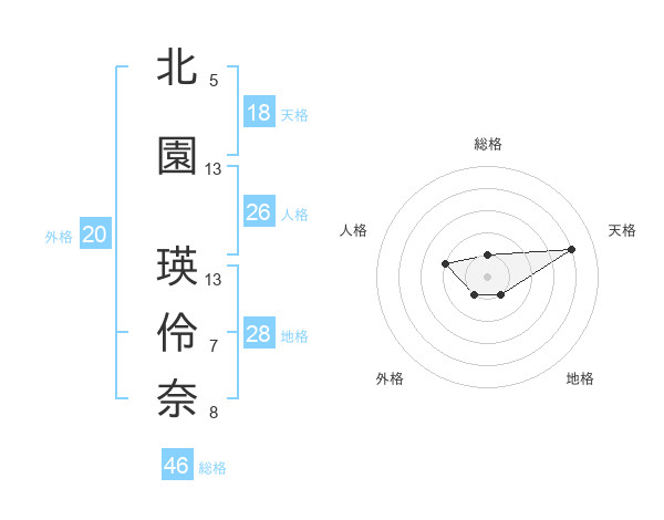 北園 瑛伶奈さんの天格は18画の4点!