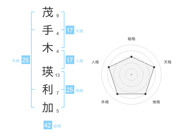 茂手木 瑛利加さんの天格は17画の4点!