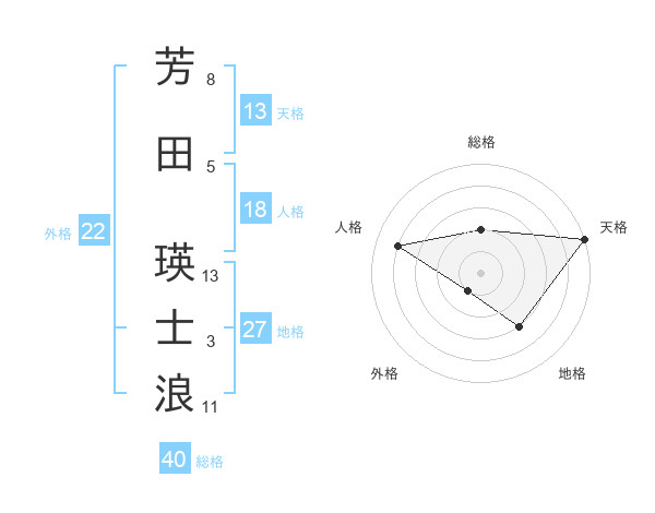 芳田 瑛士浪さんの天格は13画の5点!