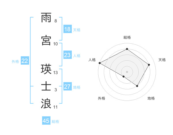 雨宮 瑛士浪さんを姓名の画数から五運を鑑定