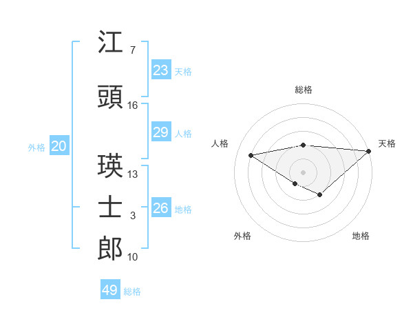 江頭 瑛士郎さんを姓名の画数から五運を鑑定