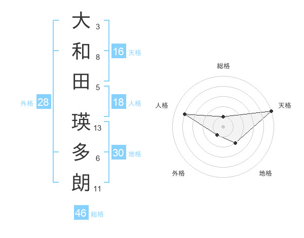大和田 瑛多朗さんの天格は16画の5点!