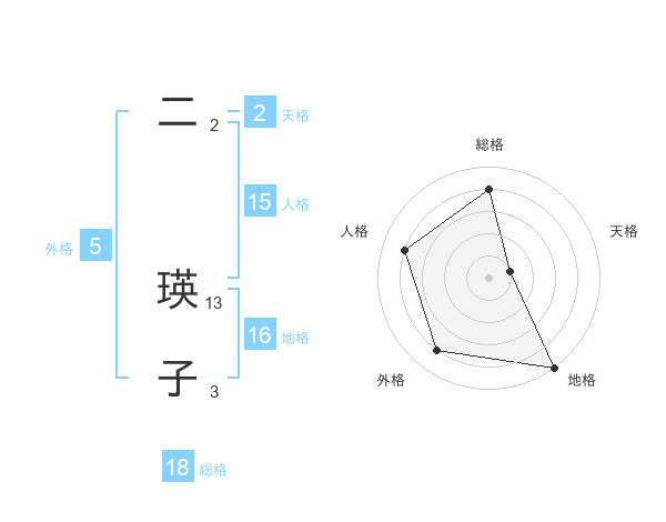 二 瑛子さんの地格は16画の5点!