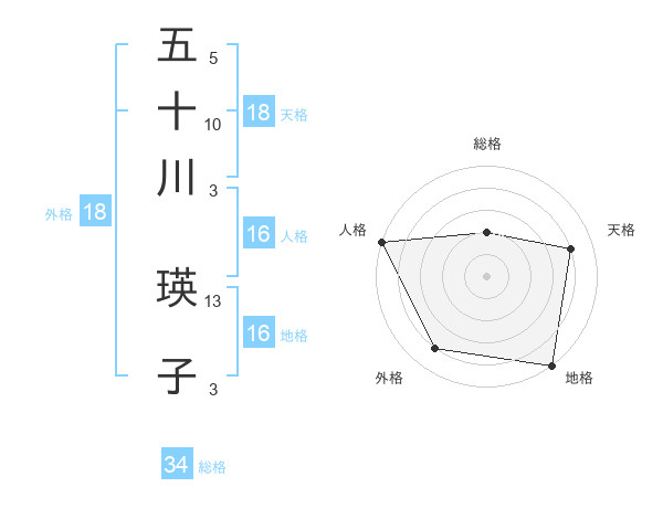 五十川 瑛子さんの天格は18画の4点!