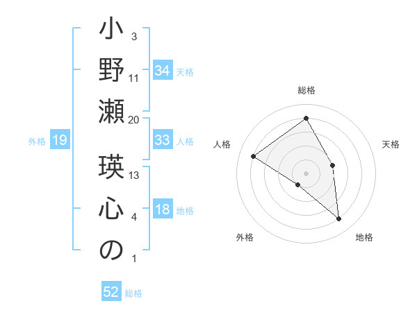 小野瀬 瑛心のさんを姓名の画数から五運を鑑定