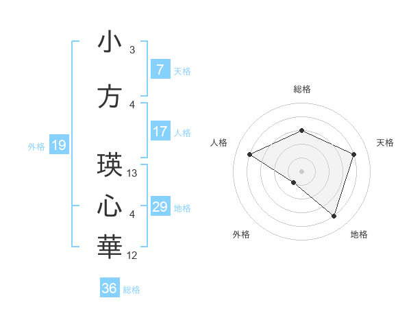 小方 瑛心華さんの総格は36画の3点!