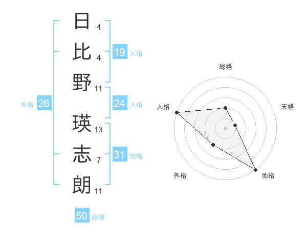 日比野 瑛志朗さんを姓名の画数から五運を鑑定