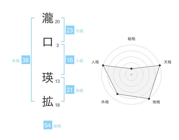 瀧口 瑛拡さんを姓名の画数から五運を鑑定