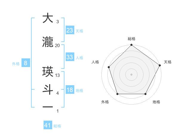 大瀧 瑛斗一さんの天格は23画の5点!