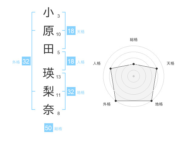小原田 瑛梨奈さんの総格は50画の2点