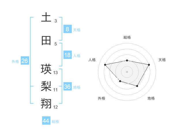 土田 瑛梨翔さんを姓名の画数から五運を鑑定