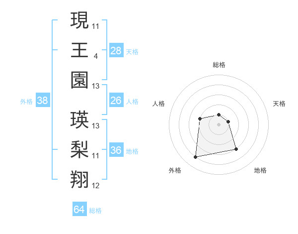 現王園 瑛梨翔さんの外格は38画の4点!