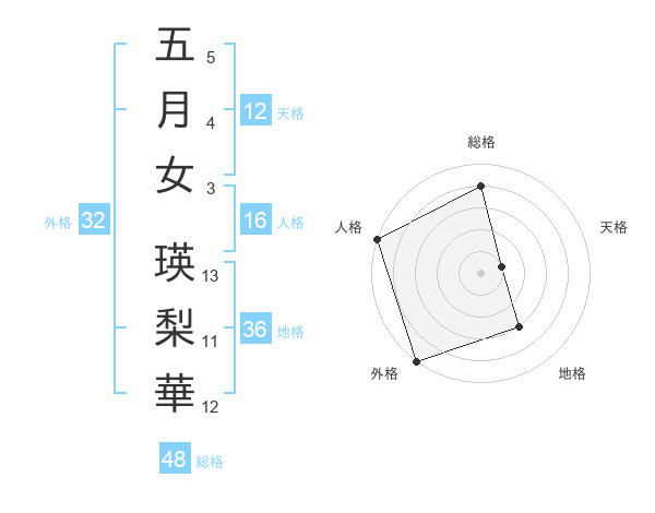 五月女 瑛梨華さんの天格は12画の1点!