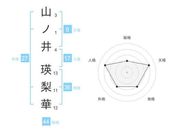 山ノ井 瑛梨華さんの天格は8画の4点!