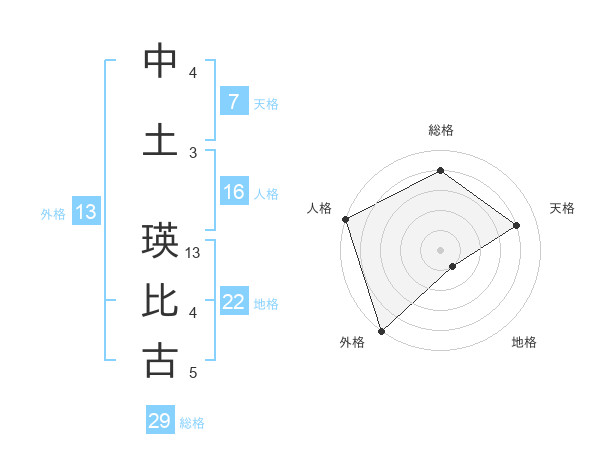 中土 瑛比古さんの総格は29画の4点!