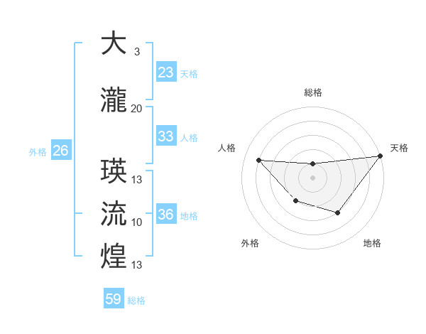 大瀧 瑛流煌さんを姓名の画数から五運を鑑定