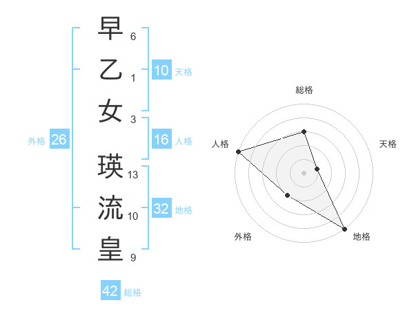 早乙女 瑛流皇さんを姓名の画数から五運を鑑定