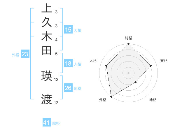 上久木田 瑛渡さんを姓名の画数から五運を鑑定