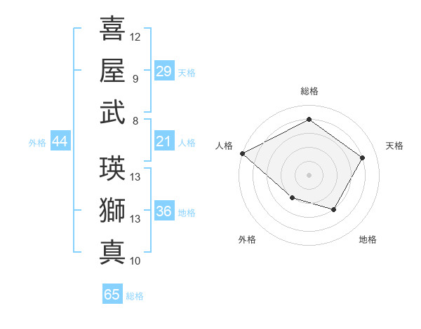 喜屋武 瑛獅真さんの人格は21画の5点!