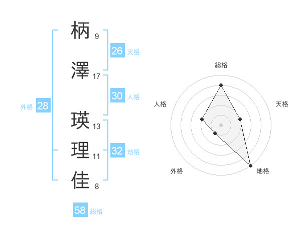 柄澤 瑛理佳さんを姓名の画数から五運を鑑定