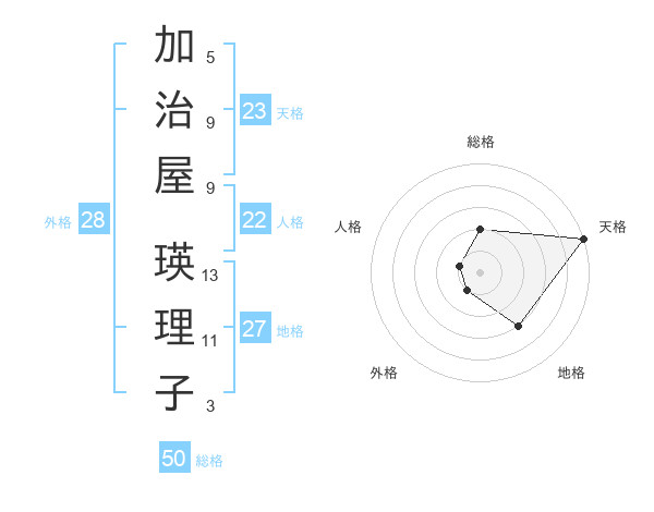 加治屋 瑛理子さんの天格は23画の5点!