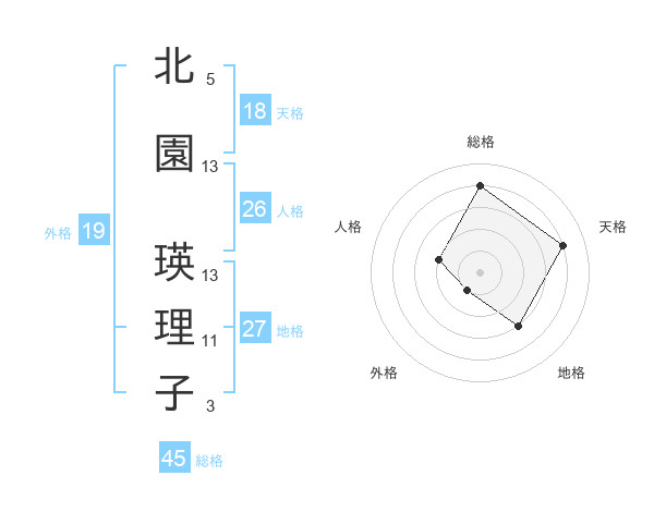 北園 瑛理子さんの天格は18画の4点!