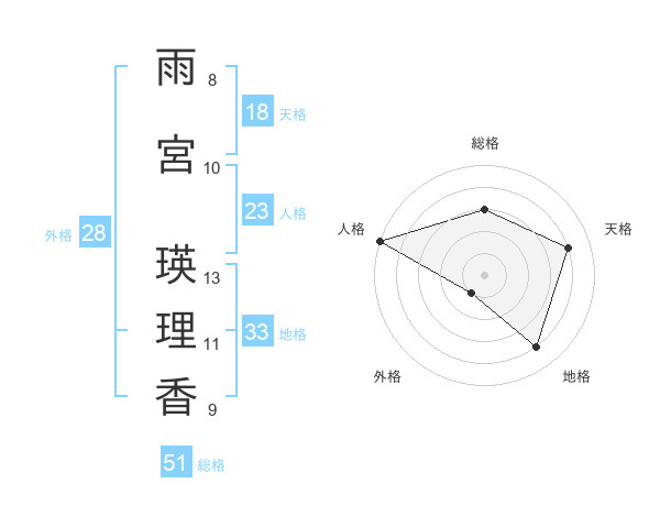 雨宮 瑛理香さんを姓名の画数から五運を鑑定