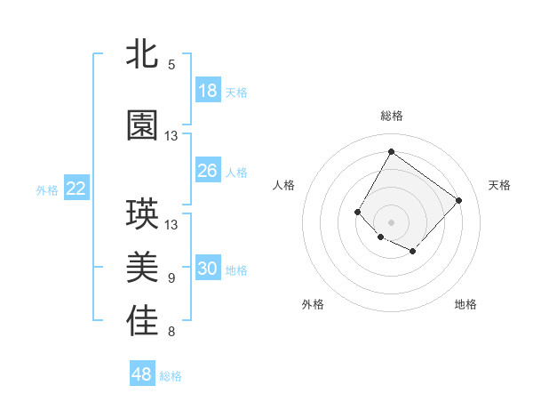 北園 瑛美佳さんを姓名の画数から五運を鑑定