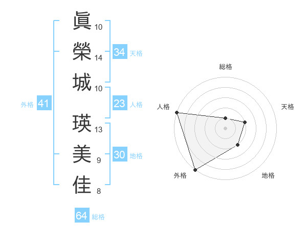 眞榮城 瑛美佳さんの外格は41画の5点!
