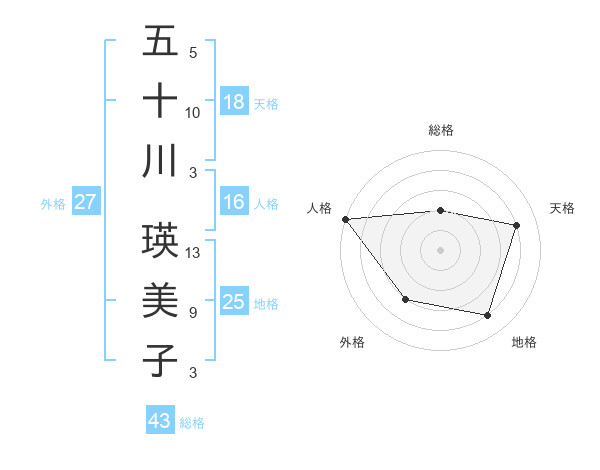 五十川 瑛美子さんを姓名の画数から五運を鑑定