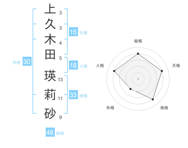 上久木田 瑛莉砂さんの天格は15画の4点!