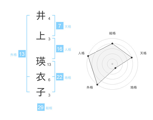 井上 瑛衣子さんの外格は13画の5点!