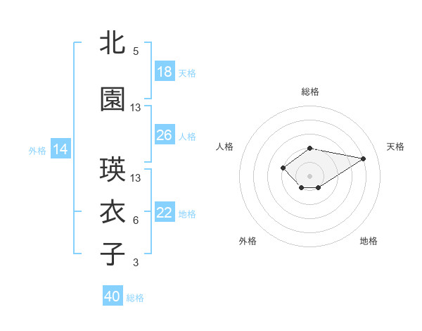北園 瑛衣子さんを姓名の画数から五運を鑑定