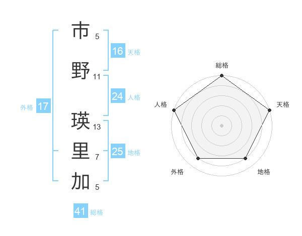 市野 瑛里加さんを姓名の画数から五運を鑑定