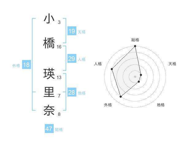 小橋 瑛里奈さんを姓名の画数から五運を鑑定