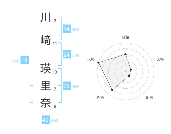 川﨑 瑛里奈さんの総格は42画の3点!