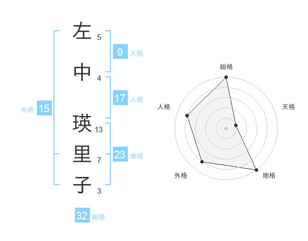 左中 瑛里子さんを姓名の画数から五運を鑑定