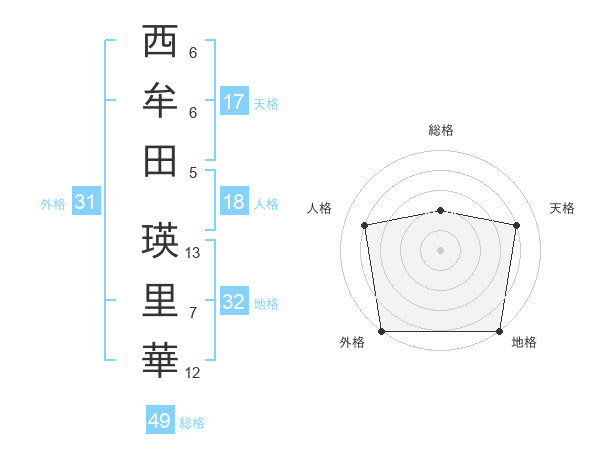 西牟田 瑛里華さんを姓名の画数から五運を鑑定