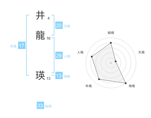 井龍 瑛さんの総格は33画の4点!
