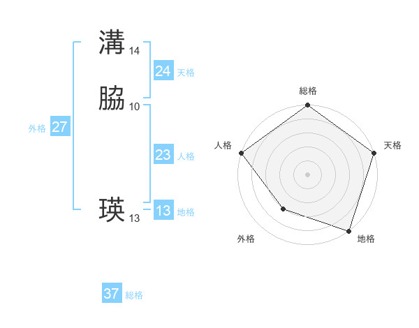 溝脇 瑛さんの総格は37画の5点!