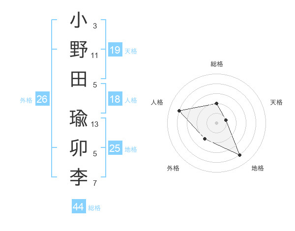 小野田 瑜卯李さんを姓名の画数から五運を鑑定
