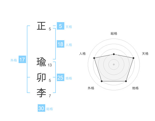 正 瑜卯李さんを姓名の画数から五運を鑑定