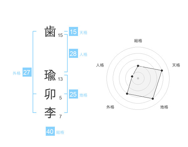 歯 瑜卯李さんの総格は40画の2点!