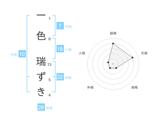 一色 瑞ずきさんの地格は22画の1点!