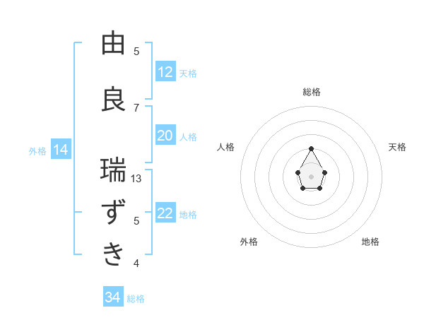 由良 瑞ずきさんの総格は34画の2点