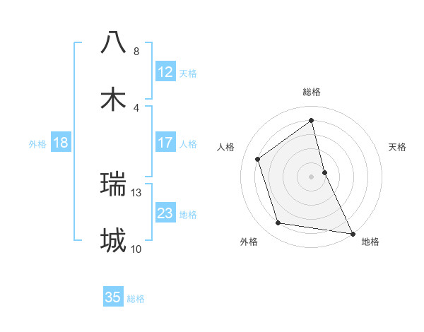八木 瑞城さんを姓名の画数から五運を鑑定