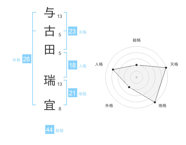 与古田 瑞宜さんを姓名の画数から五運を鑑定