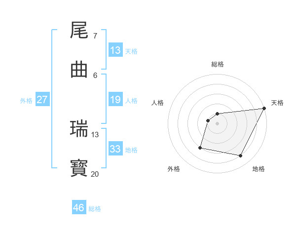 尾曲 瑞寳さんの地格は33画の4点!