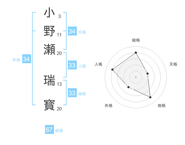 小野瀬 瑞寳さんを姓名の画数から五運を鑑定