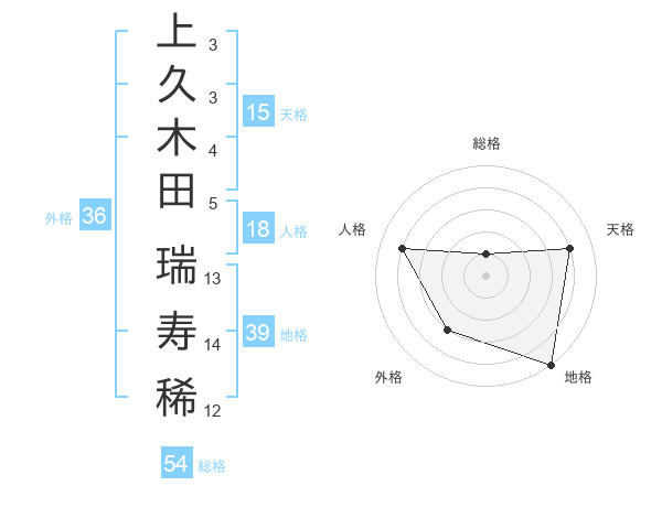 上久木田 瑞寿稀さんの天格は15画の4点!